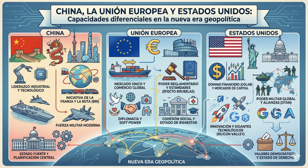 «CHINA, LA UNION EUROPEA Y ESTADOS UNIDOS: CAPACIDADES DIFERENCIALES EN LA NUEVA ERA GEOPOLITICA»
