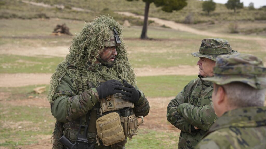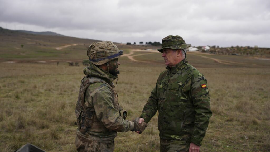 El General-jefe de la Fuerza Terrestre, Teniente General, Carlos Jesús Melero Claudio, ha visitado a las unidades desplegadas para comprobar el grado de preparación del contingente durante la conducción de un tema táctico convencional de alta intensidad.