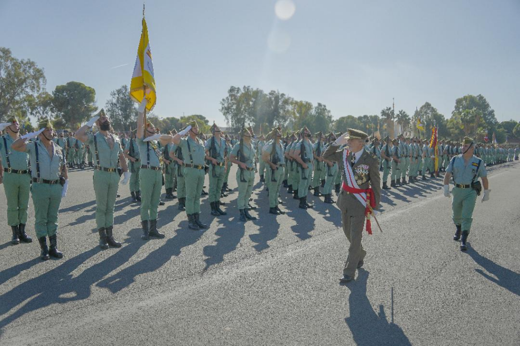Después, fueron rendidos honores a los que dieron su vida por España, los soldados entonaron y cantaron el Himno de Infantería, la canción legionaria, y dos espíritus del Credo Legionario, concluyendo con el desfile a pie frente a la presidencia del acto.